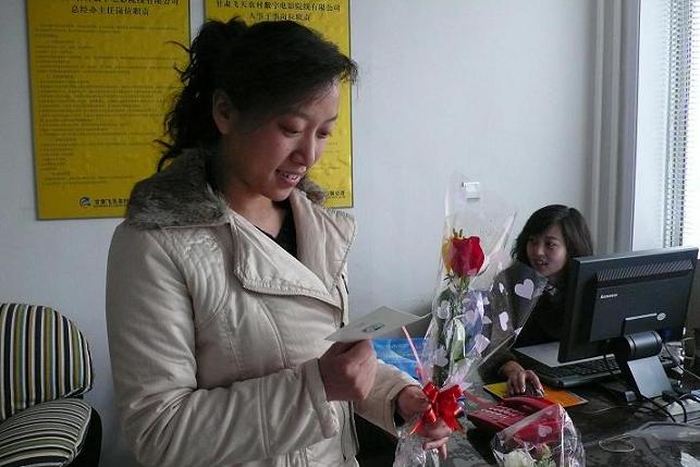 “飛天”里的“玫瑰花”,“飛天”里的“女人花”,愿你們在今后的日子里,在甘肅飛天農(nóng)村數(shù)字電影院線這個大家庭里,能向今天握在你們手里的玫瑰一樣,如期如日的展示著你們的風(fēng)采!