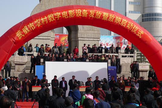 2009年 3月26日,武威市農(nóng)村數(shù)字電影放映工程全面啟動(dòng),省廣播電影電視局電影處處長(zhǎng)劉小平、武威市委常委宣傳部部長(zhǎng)曹永建、市政府副市長(zhǎng)周曉紅、市人大副主任邸亮、市政協(xié)副主席田毅、市財(cái)政局、市發(fā)改委、市廣播電影電視局領(lǐng)導(dǎo)韓吉永、甘肅省飛天農(nóng)村數(shù)字電影院線公司董事長(zhǎng)趙捷,以及各縣、區(qū)廣播電影電視局局長(zhǎng)及社會(huì)有關(guān)部門(mén)負(fù)責(zé)人參加了啟動(dòng)儀式。
