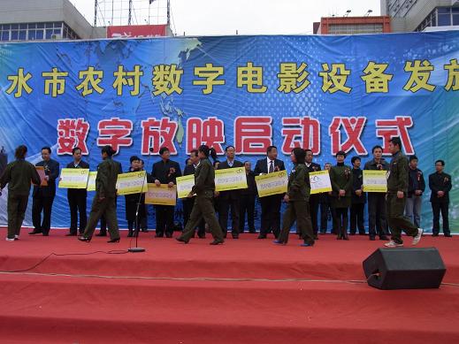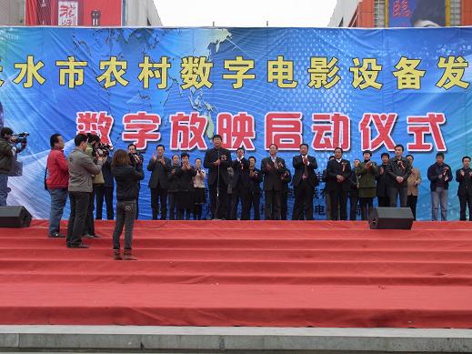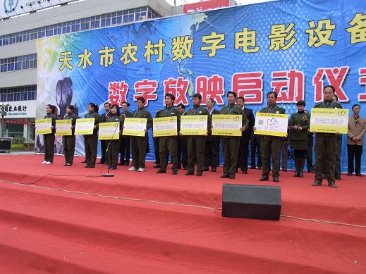 2010年 4月16日,天水市農(nóng)村數(shù)字電影放映工程全面啟動,省廣播電影電視局副局長康堅、電影處處長劉小平、天水市委常委、副市長郭奇若,市人大常委會副主任申積來,市政協(xié)副主席何道華,市廣電局領導、甘肅省飛天農(nóng)村數(shù)字電影院線公司董事長趙捷及各縣區(qū)農(nóng)村電影放映員共計500余人參加儀式。