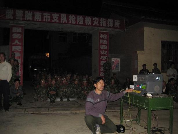 8月13日早上六點,他就和村支書帶領村民們一起裝沙袋,搬石頭堵水,幫助受災村民轉移糧食和物品,一直干到了中午12點。13時,國家減災委、民政部針對甘肅省近期暴雨洪澇災害再次緊急啟動國家四級救災應急響應,民政部駐甘肅舟曲災區(qū)前方工作組派員趕赴天水、隴南災區(qū),查災核災,指導抗災救災工作。與此同時,村鎮(zhèn)領導和干部們都趕到了現(xiàn)場,查看災情并了解情況。放映員張明輝他把用手機拍攝的災情視頻和照片提供給了他們,為當地政府掌握災情資料,起到了很好的作用。