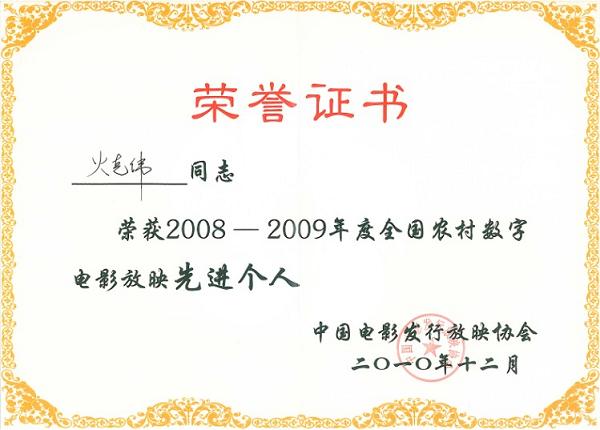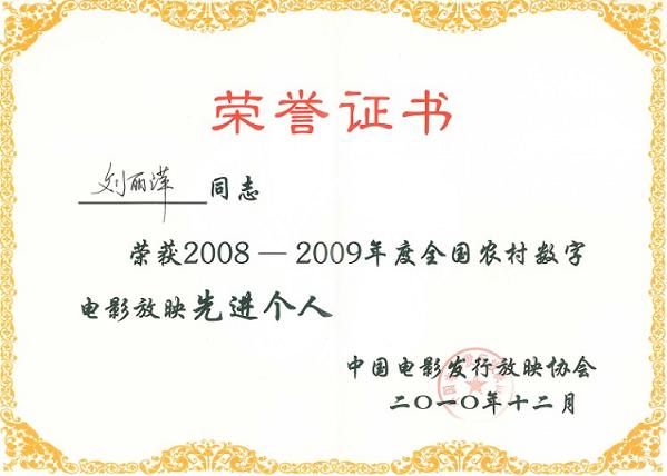 本次大會對2008—2009年全國農(nóng)村數(shù)字電影放映工程“向祖國匯報”65家農(nóng)村數(shù)字電影院線進行了表彰,并頒發(fā)了表彰證書。其中甘肅飛天農(nóng)村數(shù)字電影院線有限公司榮獲全國農(nóng)村數(shù)字電影先進單位。院線第一分公司、第三分公司華亭縣工作站、第六分公司宕昌縣工作站評選為先進工作站。放映員仇張群、劉麗萍、火克偉被評選為全國農(nóng)村數(shù)字電影放映先進個人。