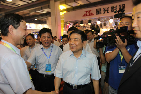 蔡赴朝等總局領(lǐng)導(dǎo)視察BIRTV2011電影數(shù)字中心展位