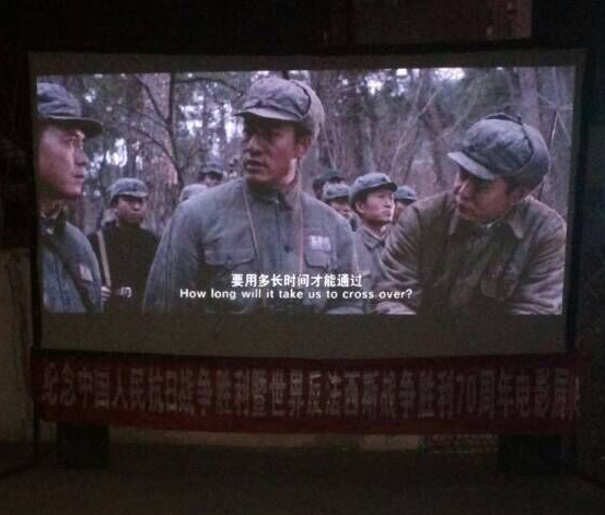 紀念中國人民抗戰(zhàn)勝利暨世界反法西斯戰(zhàn)爭勝利70周年電影展映活動中專場放映《百團大戰(zhàn)》,在展映后電影得到了群眾強烈的反響,甘肅飛天院線二分公司應地方廣電部門、及群眾要求,在所屬市、縣、行政村繼續(xù)開展《百團大戰(zhàn)》電影專場放映活動,使更多的觀眾都能觀看到這部優(yōu)秀的作品。