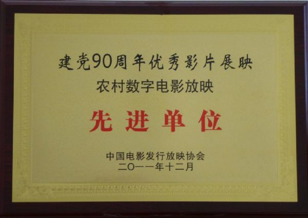 甘肅飛天院線榮獲建黨90周年優(yōu)秀影片展映先進(jìn)單位