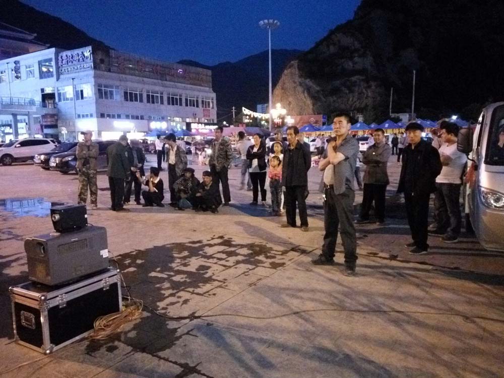 在宕昌縣民生廣場(chǎng),一聽說縣里電影放映隊(duì)要來免費(fèi)放露天電影,村民們?cè)缭绲鼐蛠淼搅朔庞硤?chǎng),大路兩側(cè)、空地上坐滿了人?赐觌娪,一位年輕人激動(dòng)地說:看了紅色電影讓我非常感動(dòng),很受教育,激勵(lì)起了我對(duì)黨、對(duì)祖國的熱愛之情。我真要感謝我們的黨和革命先烈前輩們,是他們用鮮血換來了我們今天的美好幸福生活。"