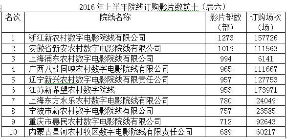 在此值得一提的是浙江新農(nóng)村數(shù)字電影院線有限公司,從2015年下半年開(kāi)始持續(xù)發(fā)力,在2016年上半年取得了訂購(gòu)影片數(shù)第一、訂購(gòu)場(chǎng)次第四的佳績(jī),這無(wú)疑得益于浙江省農(nóng)村電影改革試點(diǎn)工作開(kāi)展兩年多來(lái)所取得的成效。