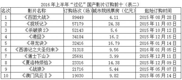 截至6月30日,數(shù)字電影服務(wù)交易平臺(tái)共有158部城市票房“過(guò)億”影片,其中2016年上半年新上“過(guò)億”影片23部;“過(guò)億”影片累計(jì)訂購(gòu)場(chǎng)次達(dá)656萬(wàn)8926場(chǎng),其中2016年上半年訂購(gòu)65萬(wàn)9402場(chǎng)。