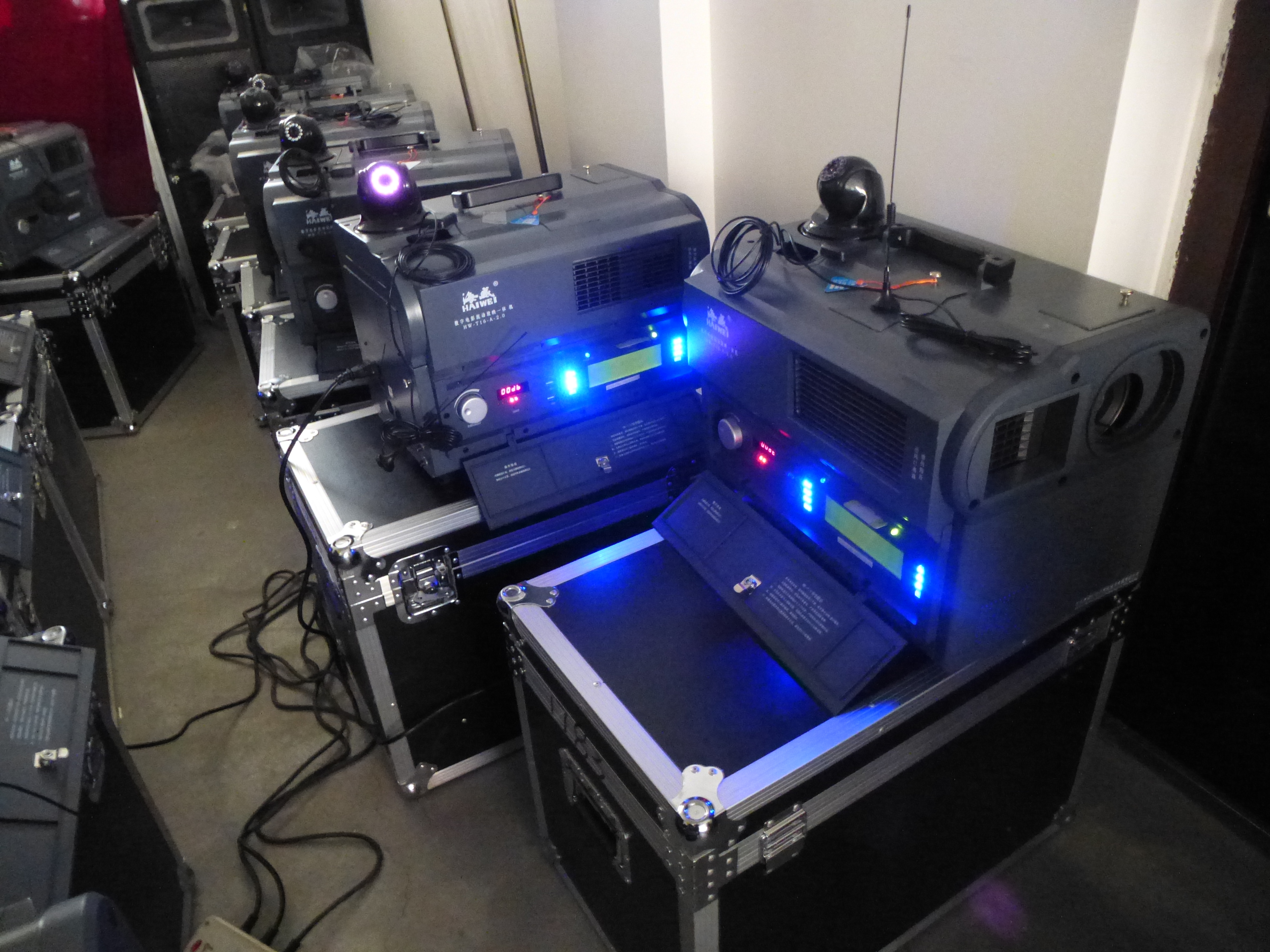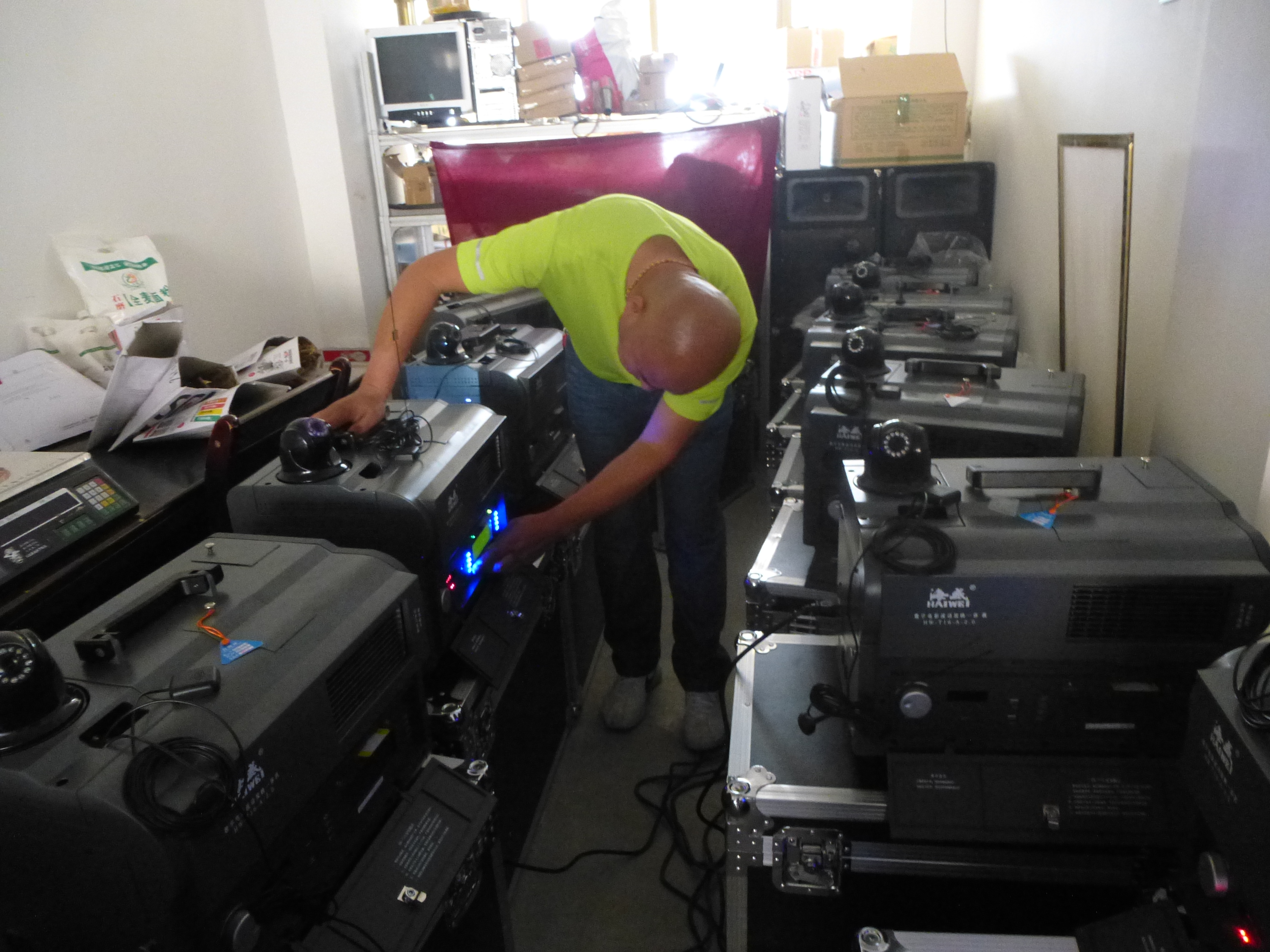 甘肅飛天院線三分公司配合海威匯達(dá)、上文廣廠家技術(shù)員對(duì)新發(fā)放設(shè)備升級(jí)維護(hù)