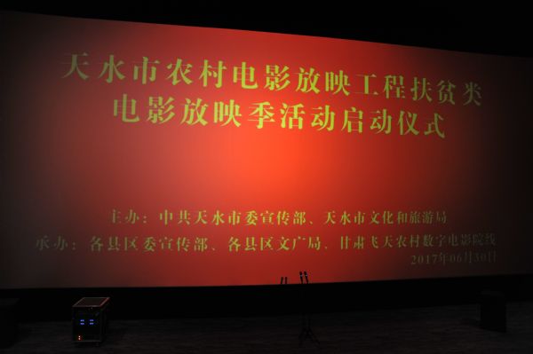 2017年6月30日,由中共天水市委宣傳部、天水市文化和旅游局,聯(lián)合主辦的"農(nóng)村電影放映工程扶貧電影放映季"活動的啟動儀式在天水市秦州區(qū)佳水岸小鎮(zhèn)時代影城隆重舉行。天水市委宣傳部、天水市文化和旅旅局、天水市扶貧辦、甘肅飛天院線公司代表、秦州區(qū)委宣傳部、區(qū)文廣局領(lǐng)導(dǎo)、電影導(dǎo)演以及農(nóng)民、學(xué)生、干部群眾、放映員、各媒體記者等170人參加了啟動儀式。