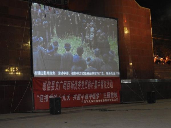 本著始終致力于全省農(nóng)村數(shù)字電影放映工作的宗旨,甘肅飛天農(nóng)村數(shù)字電影院線(xiàn)有限公司,在崇信縣宣傳部和文廣局的支持配合下,近期將百場(chǎng)優(yōu)秀黨員影片送到當(dāng)?shù)匕傩丈磉,為廣大農(nóng)村百姓的文化生活帶來(lái)一場(chǎng)文化盛宴。