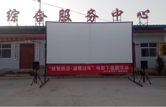 為了給基層群眾營造一個喜慶、歡樂、文明的節(jié)日氛圍,結(jié)合脫貧攻堅實際,甘肅飛天院線第六工作站于2018年2月8日至9日(農(nóng)歷臘月二十三、二十四)在武山縣四門鎮(zhèn)孫白村開展以“扶智扶志•溫暖過年”為主題的公益電影放映活動。