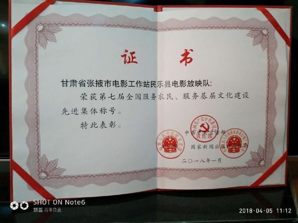 喜報(bào) | 隴南宕昌、張掖民樂兩放映隊(duì)獲榮譽(yù)稱號(hào)