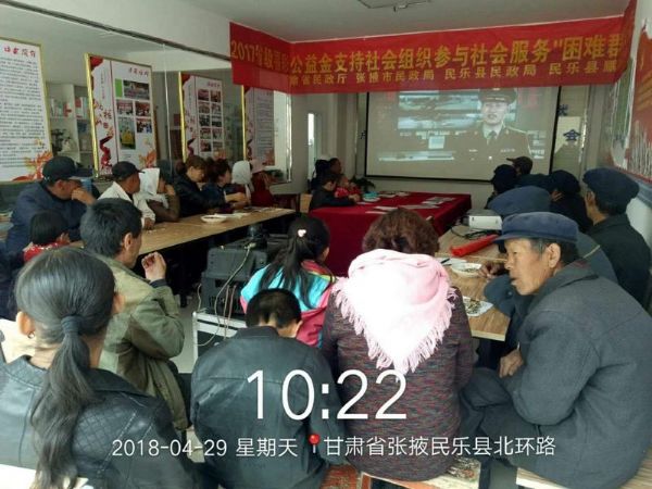 2018年4月29日,甘肅飛天農(nóng)村數(shù)字電影院線有限公司第一工作站民樂段鵬飛放映隊,受民樂鵬程公益協(xié)會的邀請,為福彩公益支持社會組織,參與社會服務(wù)“困難群體救助”活動,放映電影《紅鷹突擊隊—血濺狼彎》、科教片《樓房逃生與自救》、《婚喪嫁娶樹新風(fēng)》,《鄉(xiāng)村記憶》。
