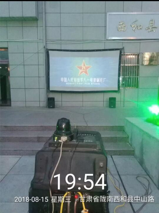 為慶祝這一盛大活動的到來,甘肅飛天農(nóng)村數(shù)字電影院線有限公司第六工作站專門安排放映員祁紅偉于2018年8月14日至8月15日,在西和縣乞巧園進(jìn)行為期2天的電影專場放映。放映影片有《大會師》、《紅鷹突擊隊(duì)之深入敵后》、《古田會議》、《紅鷹突擊隊(duì)之大破騎營》等。
