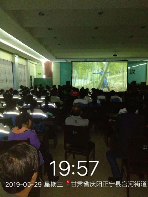 2019年5月29日晚,甘肅飛天農(nóng)村數(shù)字電影院線有限公司第五工作站放映員馮進宏,在宮河鎮(zhèn)第三中學為學生們放映了《南宋獵人之絕地反擊》、《報國忠烈楊靖宇》兩部故事片。