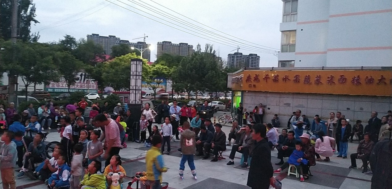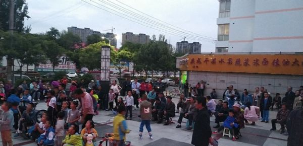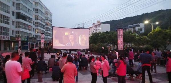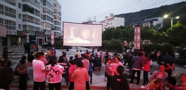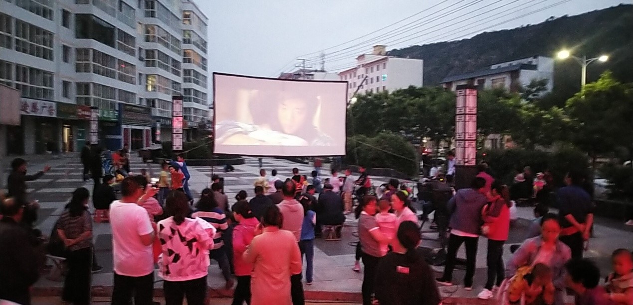 晚上6點(diǎn)多,吃過晚飯的居民們,考完試的學(xué)子們,三三兩兩端著小板凳,有說有笑地來到小區(qū)的廣場上等待電影放映。