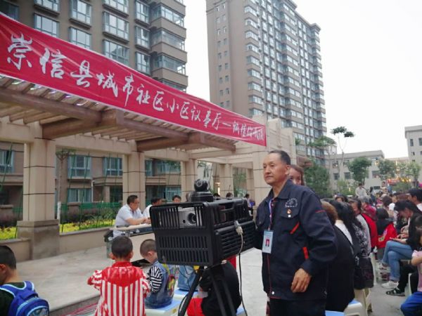 崇信縣城區(qū)管委會魚堡子社區(qū)于6月17日在崇信縣城新世紀(jì)A區(qū)11號樓前面花園社區(qū)開展誠信宣講活動,甘肅飛天農(nóng)村數(shù)字電影院線第三工作站放映員梁仲紋受邀在活動當(dāng)天,為社區(qū)群眾放映國產(chǎn)優(yōu)秀影片《丟心》。