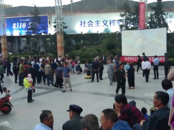 定西市委宣傳部副部長(zhǎng)張國盛主持活動(dòng)儀式,李建軍代表中影集團(tuán)公司講話并向此次科技列車行活動(dòng)所到地贈(zèng)送2000場(chǎng)公益電影放映場(chǎng)次,夏青圖接收贈(zèng)送牌,董力宣布“科教電影惠民生放映活動(dòng)啟動(dòng)”,科技列車甘肅行電影放映隊(duì)給觀眾們放映了科教片《科學(xué)運(yùn)動(dòng)健康生活》和國產(chǎn)大片《智取威虎山》,吸引了幾百名男女老少觀眾駐足觀看。