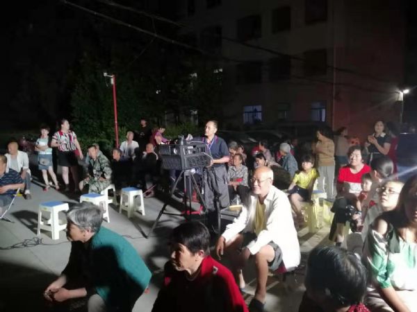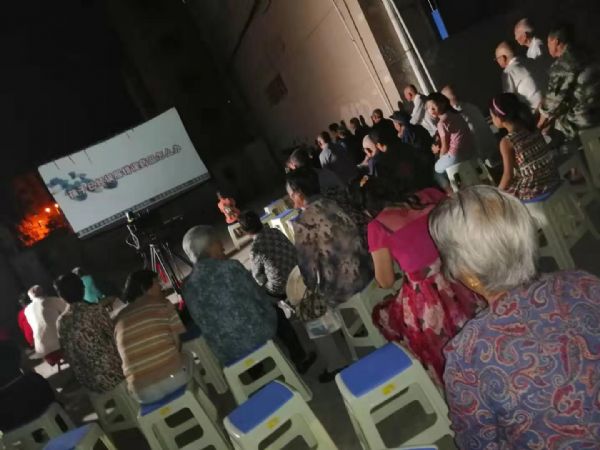 活動當(dāng)晚,放映員為社區(qū)居民放映了科教片《青少年暑假安全常識》、《脫貧路上好支書》、《崇德向善好村民》,還有優(yōu)秀影片《我的老兵爺爺》。影片講述的是一個參加過萊蕪戰(zhàn)役的老兵,因患有老年癡呆癥,偶然接到一個老戰(zhàn)友的電話發(fā)現(xiàn)居然忘記了這個老戰(zhàn)友是誰。這是一段難忘的歲月,對一個即將進入生命終點的老人來說彌足珍貴,于是他決定去尋找當(dāng)年一起經(jīng)歷過生死的老戰(zhàn)友。曲折的劇情吸引著人們的目光,尤其是老人,仿佛自己身臨其境,甚至有些老人被電影情節(jié)所打動,不禁潸然淚下。