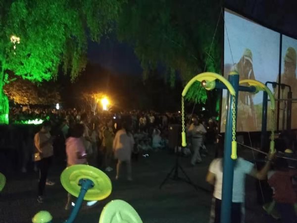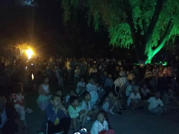 八月是燥熱的,但也是豐收的季節(jié)。2019年8月13日在平?jīng)鍪嗅轻紖^(qū)錦江廣場上舉辦了蘇杭絲綢博覽會——全國名優(yōu)土特產(chǎn)直銷會,西郊街道二天門社區(qū)邀請甘肅飛天農(nóng)村數(shù)字電影院線有限公司平?jīng)鍪嗅轻紖^(qū)放映員崔懷在此放專場電影。隨著夜幕降臨,人們從四面八方趕來,有湊熱鬧的,有消費的,人山人海,叫賣聲,吆喝聲,廣場上人頭攢動,非常熱鬧。但是最吸引人的還是那精彩的電影畫面,男女老少都聚集在此,津津有味的看起了電影,當(dāng)晚播放了精彩的影片《不許動》、《中國藍(lán)盔》。