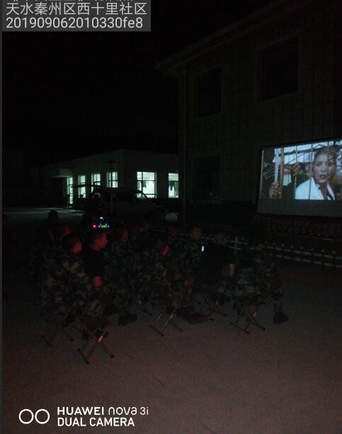 2019年9月6日、9月8日,甘肅飛天農(nóng)村數(shù)字電影院線第六工作站分別安排放映隊在天水市秦州區(qū)董家坪村武警某部、隴南市兩當(dāng)縣縣人武部進行公益電影專場放映。