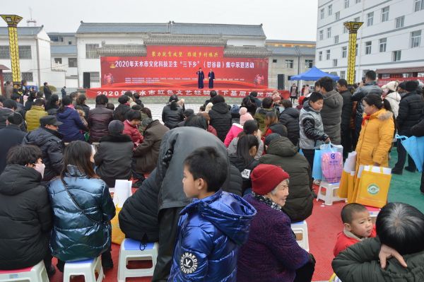2020年1月10日,由天水市委牽頭,市直15個(gè)部門共同參與的2020年天水市文化科技衛(wèi)生“三下鄉(xiāng)”集中示范活動(dòng)在甘谷縣六峰鎮(zhèn)舉行。甘肅省天水市政協(xié)領(lǐng)導(dǎo)、科技、衛(wèi)生、文化等單位及農(nóng)林科技、醫(yī)療衛(wèi)生、文化藝術(shù)界的專家和委員,深入到甘谷縣六峰鎮(zhèn)開展了農(nóng)業(yè)科技咨詢講座、義務(wù)診療、送文藝、書畫到農(nóng)家的“三下鄉(xiāng)”活動(dòng)。