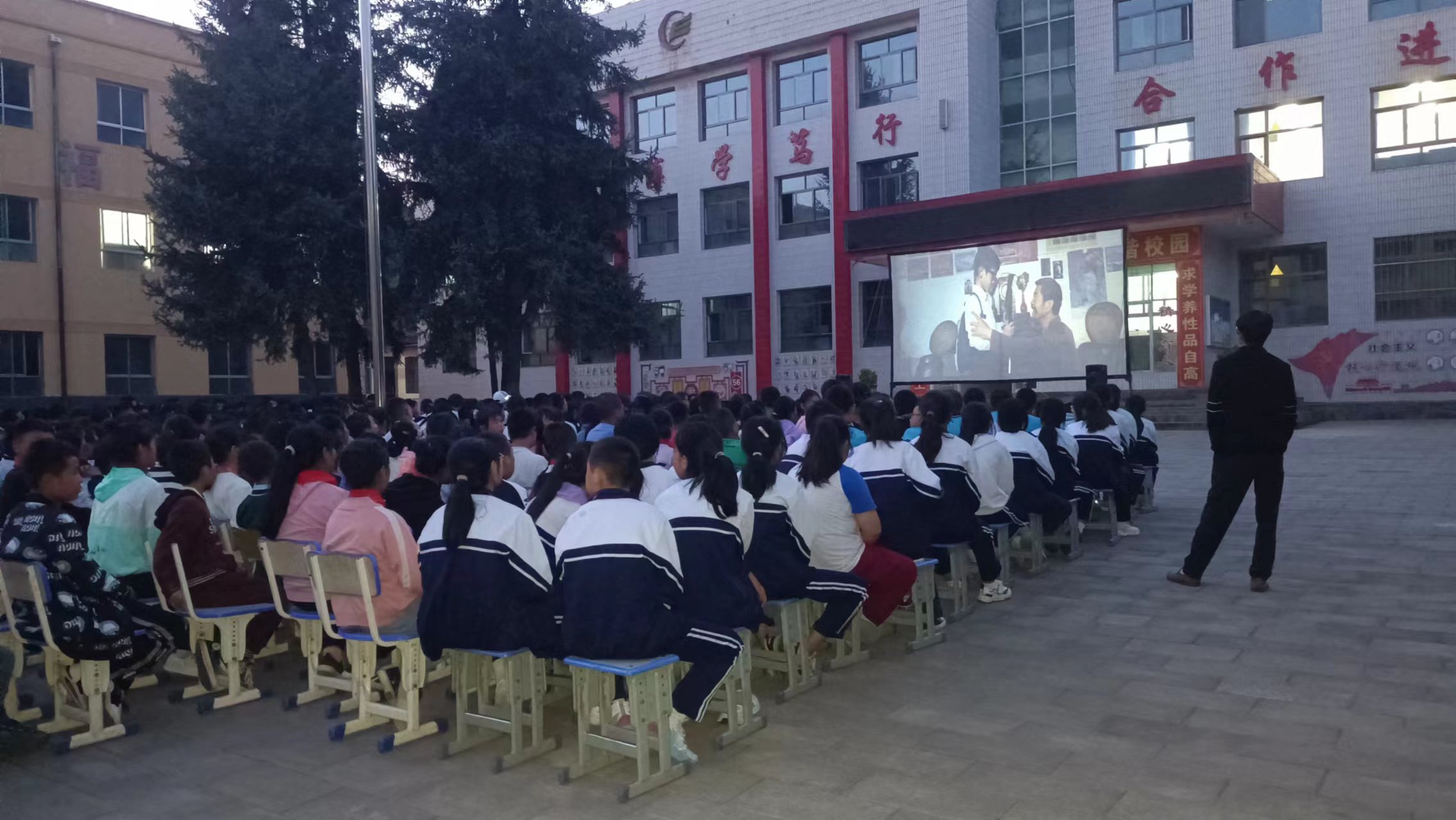 平?jīng)鍪徐`臺縣第一中學2023級高一新生軍訓開訓儀式活動后,甘肅飛天院線靈臺工作站放映員,為同學們放映了影片《長空之王》、《軍事禁區(qū)》。這兩部電影都是優(yōu)秀的愛國教育影片,展現(xiàn)了軍人們的忠誠、勇敢和擔當。讓升入高中的新生更深入地了解國家、軍隊等方面的知識,同時也可以激發(fā)他們的愛國熱情和民族自豪感。
