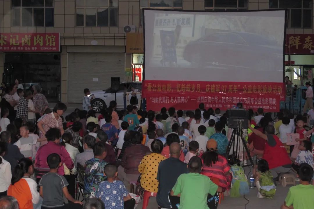 4、在慶祝中華人民共和國成立75周年的輝煌時刻,為學(xué)習(xí)宣傳貫徹黨的二十屆三中全會精神,全面推進(jìn)中國式現(xiàn)代化強(qiáng)國建設(shè),實(shí)現(xiàn)中華民族偉大復(fù)興夢。落實(shí)“學(xué)全會、迎國慶、看電影”等工作的部署,甘肅飛天農(nóng)村數(shù)字電影院線有限公司在中共甘肅省委宣傳部的領(lǐng)導(dǎo)下開展了“與時代同行 與人民同心”—熱烈慶祝中華人民共和國成立75周年公益電影展映活動,本月放映848場次,觀影21980人次。此活動年累計放映場次4萬多場,惠及群眾約95萬人次。用光影的力量弘揚(yáng)愛國主義精神,唱響新時代的主旋律。