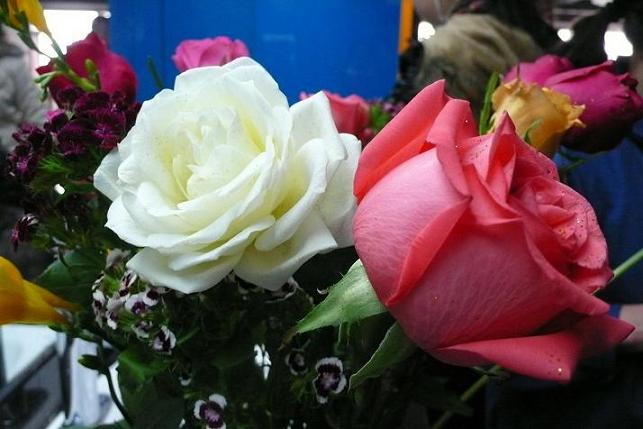 玫瑰紅得艷麗,花瓣上凝著水珠,蕊兒嬌媚羞澀,朵朵葉葉緊密擁抱在一起流淌著濃郁的香氣。彩色的絲帶長長彎曲,好像少女的一縷頭發(fā),俏麗著青春。初春蘭州仍然寒冷,可房間里的玫瑰卻沁人心脾。