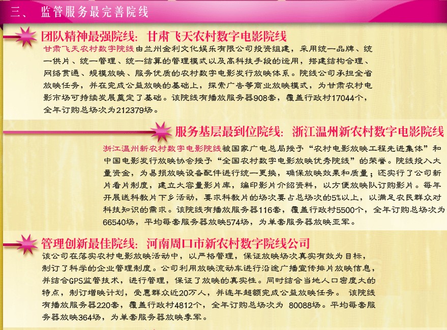 盤點2010年風(fēng)采院線 甘肅飛天院線被評為監(jiān)管最完善院線