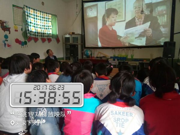 2017年6月23日,甘肅飛天院線第三工作站臨洮縣新添鎮(zhèn)放映隊(duì)放映員潘建斌(機(jī)號:1774)攜帶放映設(shè)備來到臨洮縣上營鄉(xiāng)劉家下頭小學(xué)放映專場電影。劉家下頭小學(xué)地處臨洮縣馬哈山腳下,條件艱苦,學(xué)校有學(xué)生64名,放映當(dāng)天,放映員為學(xué)生們放映了《鄉(xiāng)村記憶》《兒童免疫規(guī)劃》具有教育意義的科教片等電影,學(xué)生們安靜的坐在教室里觀看電影,童真的臉上滿是求知渴望的眼神,放映員看到這一切所有的勞累都覺得是值得的。此次專場電影放映活動得到老師和學(xué)生們的贊譽(yù)。