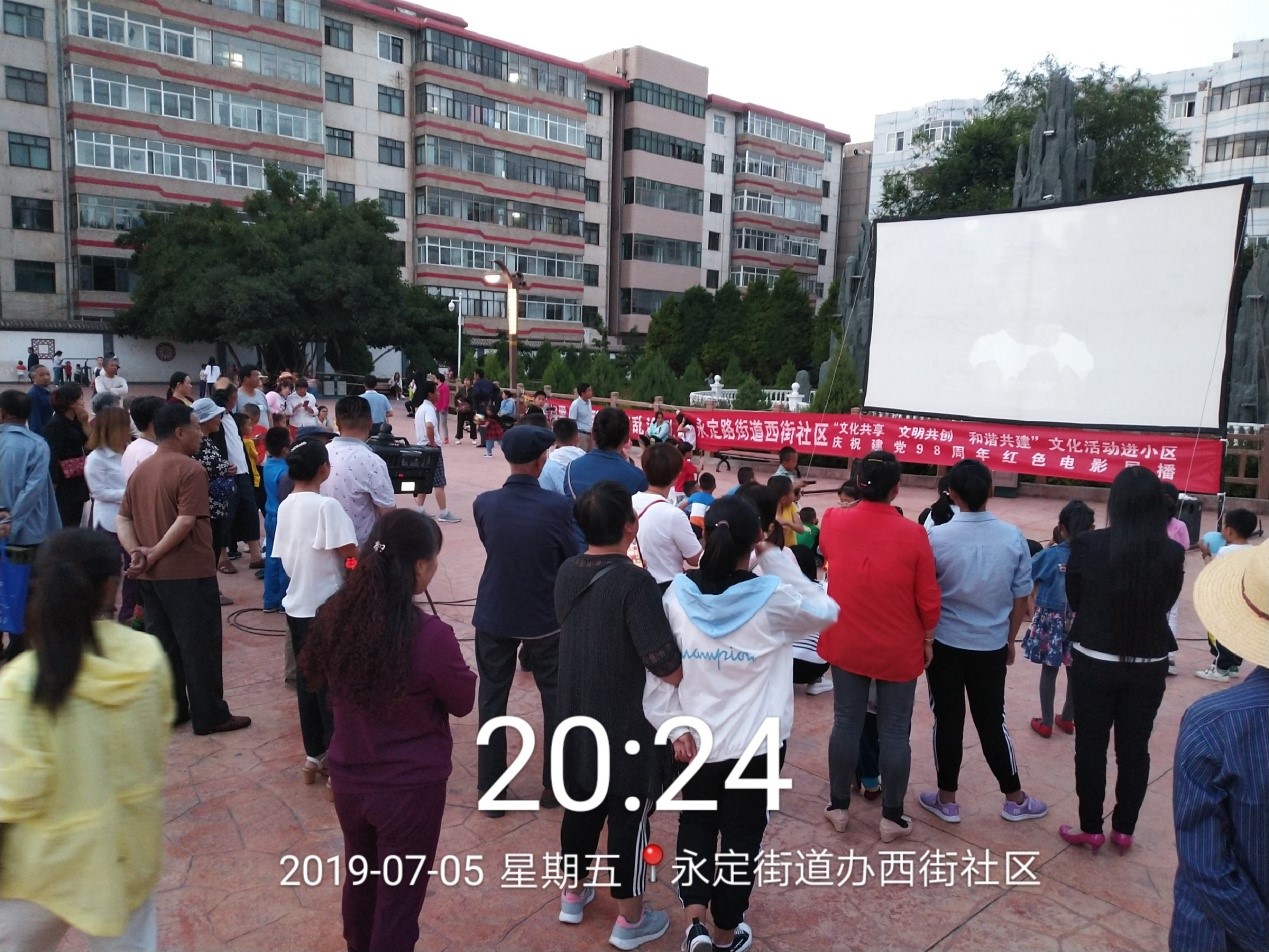 2019年是新一輪創(chuàng)建全國(guó)文明城市的關(guān)鍵之年,為深入推進(jìn)新一輪創(chuàng)建全國(guó)文明城市工作,為學(xué)習(xí)貫徹十九大精神,響應(yīng)市委、市政府創(chuàng)建全國(guó)文明城市號(hào)召,共建共享生態(tài)文明、綠色生活、美好家園,積極營(yíng)造一個(gè)整潔、優(yōu)美、健康的人居環(huán)境,7月5日,永定路街道以“文化共享·文明共創(chuàng)·和諧共建”為主題,邀請(qǐng)甘肅飛天農(nóng)村數(shù)字電影院線有限公司第三工作站放映員邵旭文在定西市安定區(qū)永定路街道西街社區(qū)播放紅色影片“智取威虎山” 。 這部影片講述的是解放軍一支驍勇善戰(zhàn)的小分隊(duì)與在東北山林盤(pán)踞多年的數(shù)股土匪斗智斗勇的故事。 此次活動(dòng)以豐富多彩的節(jié)目形式讓居民們近距離感受到文化藝術(shù)的魅力,樹(shù)立鄰里之間互幫互助的意識(shí),爭(zhēng)做鄰里溝通的熱心人,爭(zhēng)做鄰里互助的志愿者,爭(zhēng)做鄰里和睦的促進(jìn)者,爭(zhēng)做社區(qū)內(nèi)的文明人,最終共同構(gòu)建和諧新社區(qū)的美好局面。 (第三工作站投稿)